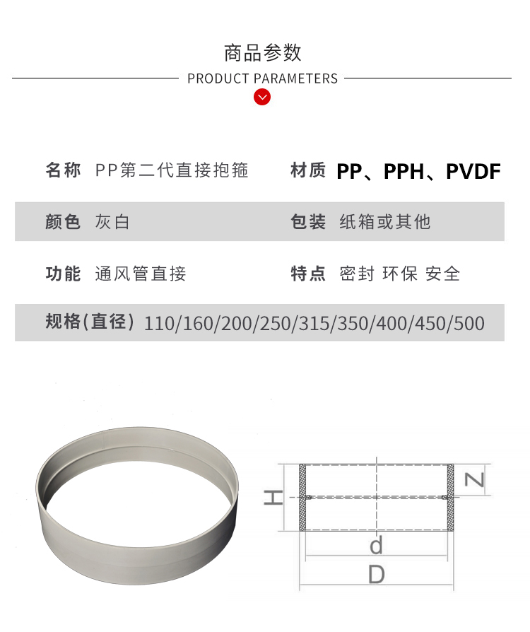 PPH直接套环加强筋风管承插焊接DN15-DN2000